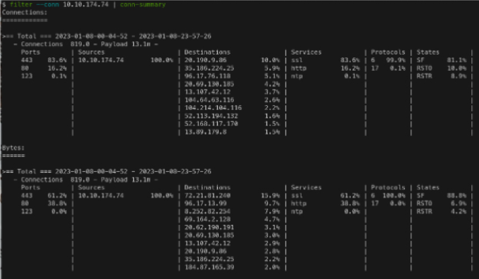 filter --conn $IP | conn-summary
